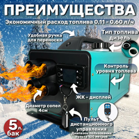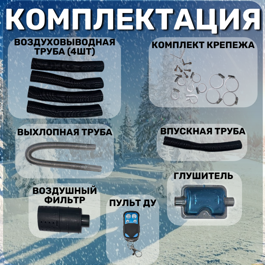 | Дополнительная информация | Автономный дизельный отопитель, известный как сухой фен, является важным устройством для частного и коммерческого транспорта, экономящее средства в период простоя. Его портативность позволяет применение в различных местах, таких как дом, мастерская, теплица, гараж, а также на даче, рыбалке, в туризме и в автомобиле типа газель. |