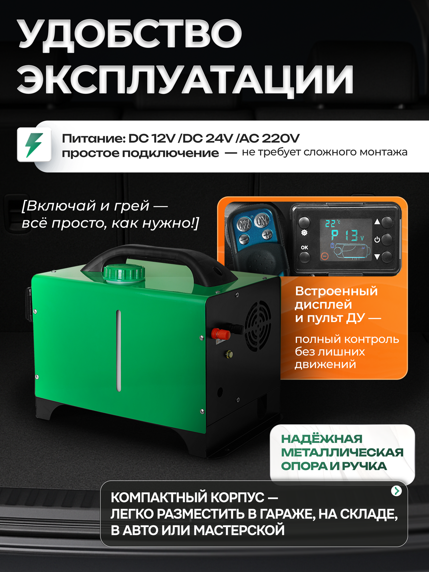 Автономный отопитель салона Electrolite TSD 8F, дизельный, черный/зеленый, 12/220/24В: сравнение цен, характеристики, фото, актуальное наличие и цены.