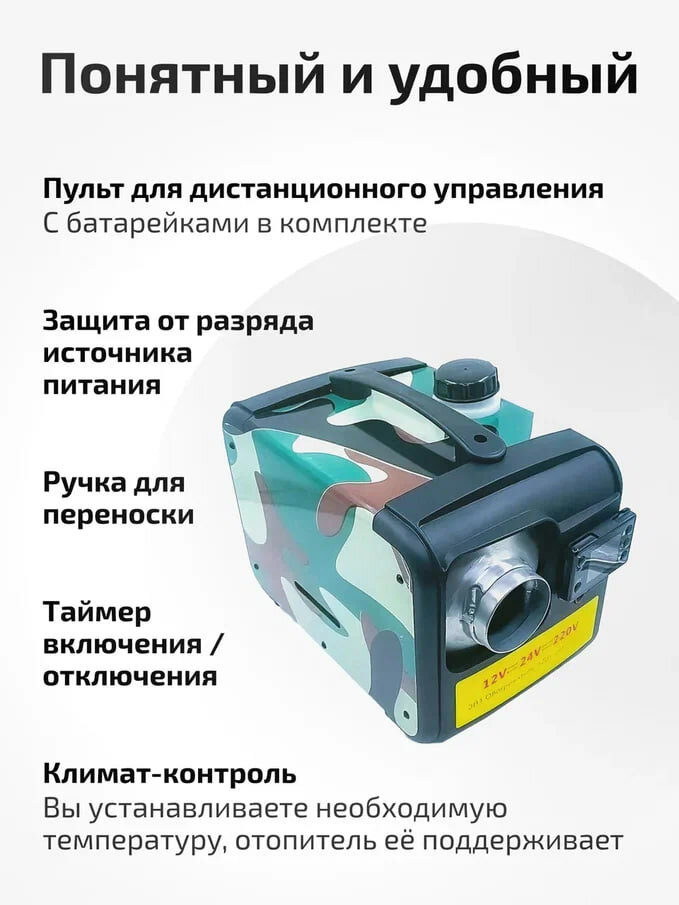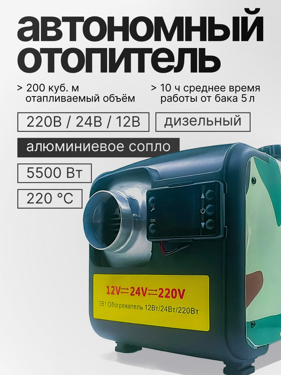 Автономный отопитель переносной 12-24-220В 5кВт, камуфляж, 1 алюм. сопло, черный: сравнение цен, характеристики, фото, актуальное наличие и цены.
