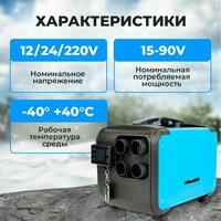 - Отопитель работает на дизельном топливе и питается от обычной розетки в 220В или от аккумулятора 12В/24В