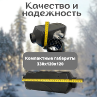 Особенностью данного отопителя является его компактность и удобство установки. Габариты устройства составляют всего 330х120х120 мм, что позволяет разместить его под сиденьем грузовика или автомобиля.