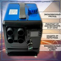Устройство работает на дизельном топливе и может питаться от 12/24 или 220 Вольт, что делает его удобным для использования в различных условиях. Устройство комплектуется удобным пультом управления с индикацией мощности, напряжения, температуры, а также имеет пульт дистанционного управления с дальностью действия 70 метров. Это позволяет легко контролировать работу обогревателя и задавать необходимые параметры.