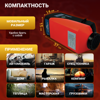 Отопитель отличается небольшими размерами и весом, что делает его идеальным выбором для рабочего пространства и транспорта. Вы можете перемещать устройство между различными объектами без особых усилий. Различные типы питания позволяют подключиться к сети как в автомобиле, так и дома.