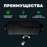 - Отопитель работает на дизельном топливе и питается от аккумулятора 12В