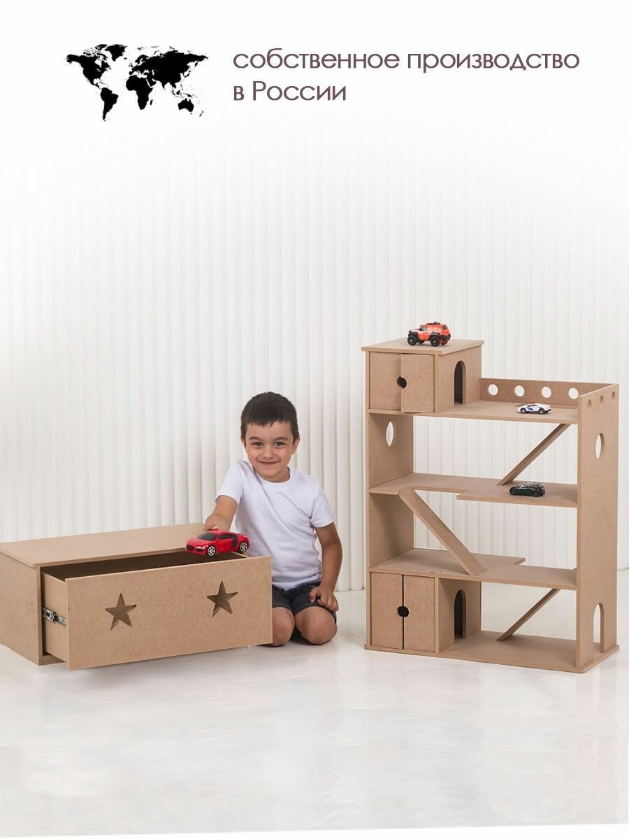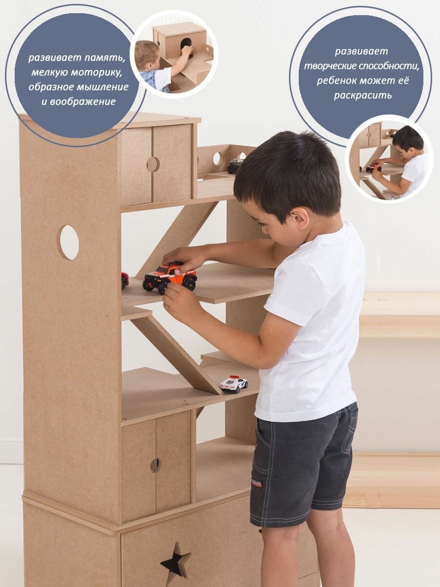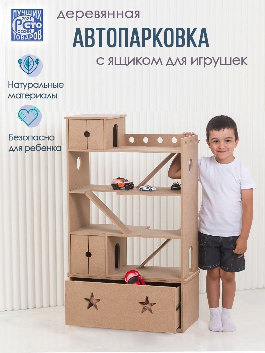 Автопарковка с ящиком для игрушек – это идеальный выбор для маленьких автолюбителей, автомобилистов. Изготовленная из качественных материалов, она станет не только местом для хранения детских машинок, но и площадкой для увлекательных семейных игр детям. Ребенок сможет “ставить на стоянку” свои машинки, развивая при этом свою моторику и координацию движений. Автопарковка сюрприз- идеальное, оригинальное решение для хранения многочисленных детских машинок. Многоуровневая парковка для машин позволит ребенку организовывать различные сценарии игры, развивая его мышление и логику. Парковка сделана из МДФ 10 мм. Благодаря тому, что автопарковка без окрашивания, у Вас есть возможность окрасить ее в любимый цвет ребенка, или в подходящий под интерьер цвет. Размеры парковки без ящика: глубина 30 см, ширина 61 см, высота 80 см. Покупая эту парковку, вы делаете отличный выбор для своего ребенка, который будет наслаждаться этой игрушкой на протяжении долгого времени. Не упустите возможность порадовать своего племянника, малыша и приобрести ему такой замечательный подарок на Новый год дракона, день рождения, 23 февраля, день защиты детей. Это будет отличный оригинальный необычный новогодний подарок на новый 2024 год для Вашего любимого сына, крестника, брата, мальчика 6,7, 8, 9, 10,12 лет. Компания - производитель "Детская1", уже зарекомендовала себя на рынках не только России, но и мира, продукция экспортируется в 15 стран. Покупайте качественную продукцию! Hot Wheels, хот вилс, тракторы, каталки, полицейские и пожарные машины, скорая помощь и робокар, WiMi, вими, Рыжий Кот, Эврики, Маркетспейс низких цен, полесье, Milan, ZABIAKA, забияка, маркетмастер, Игрушки из дерева, хороший год,