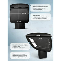 Надежный и функциональный автоподлокотник устанавливается между водительским и пассажирским сидением. Обивка изготовлена из износостойкой экокожи высокого качества. Автоподлокотник индивидуально разрабатывается для каждой модели, придавая тем самым максимальный комфорт в использовании. Легко устанавливается, объемное и вместительное внутреннее пространство.