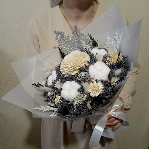 Купить Авторский букет из лаванды, сухоцветов и стабилизированных цветов «Лавандовые облака» с доставкой по всей России.