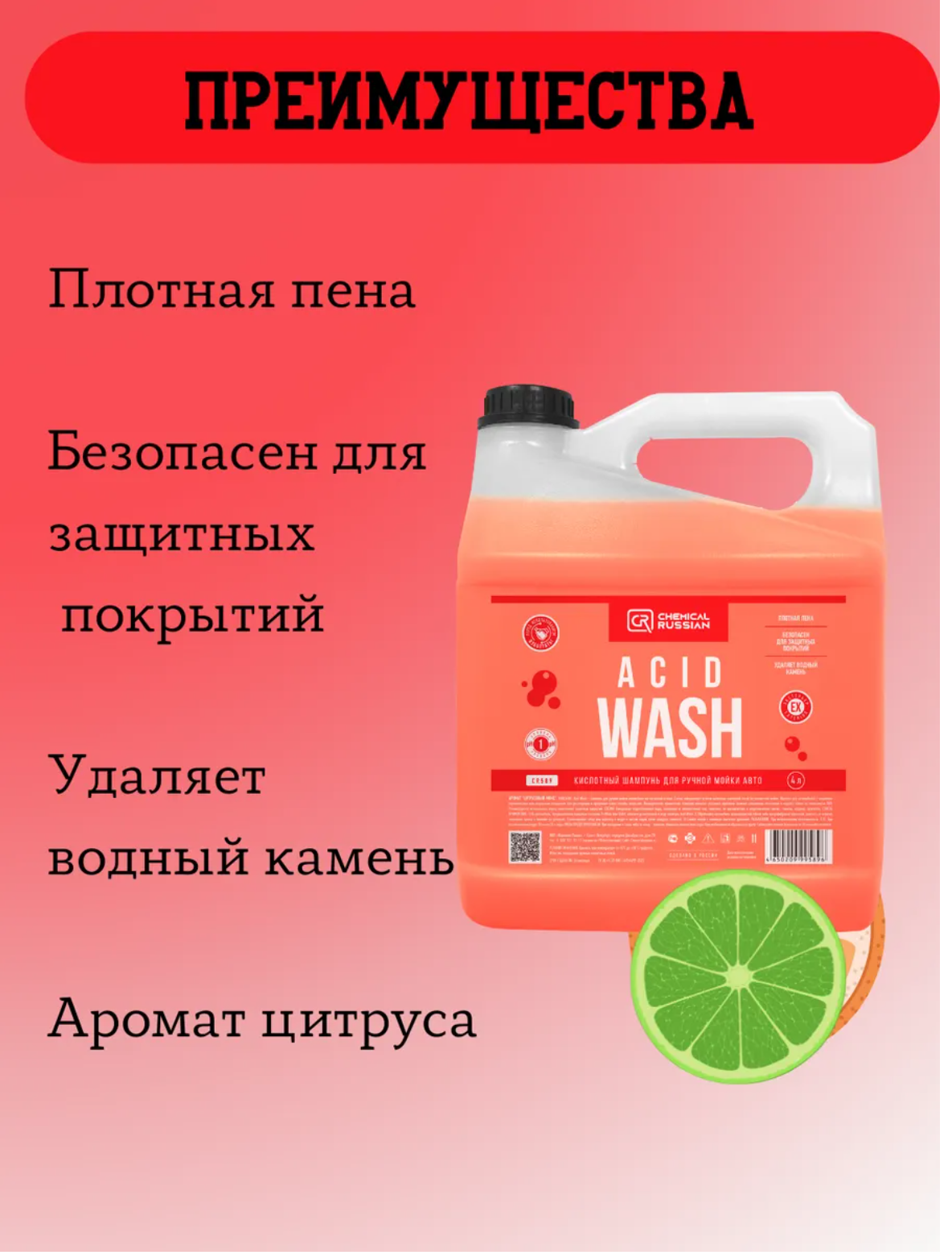 Купить Автошампунь — Acid Wash, 4 л, Chemical Russian, шампунь кислотный для ручной мойки с доставкой по всей России.