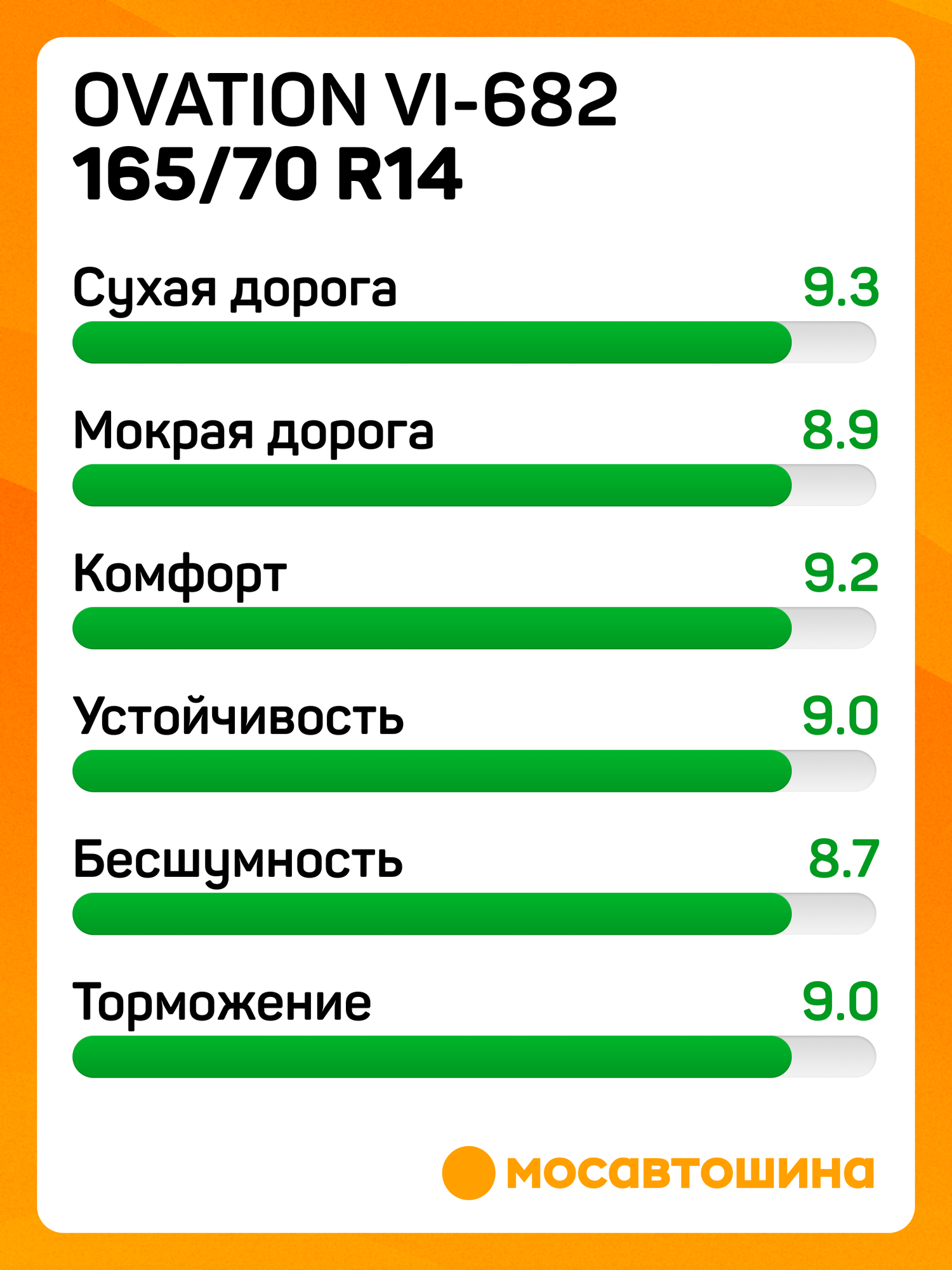 Летние шины 14/165/70 Ovation VI-682 81T: сравнение цен, характеристики, фото, актуальное наличие и цены.