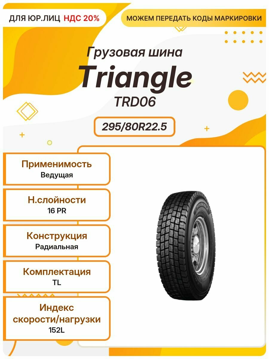 Грузовая шина Triangle TRD06, 295/80R22.5, 152L, TL, Ведущая: сравнение цен, характеристики, фото, актуальное наличие и цены.