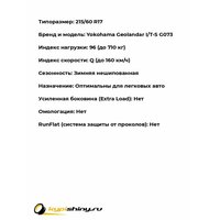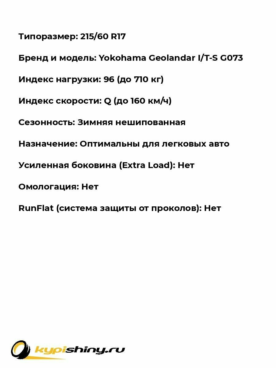 Зимние шины Yokohama Geolandar I/T-S G073 215/60 R17 96Q нешип: сравнение цен, характеристики, фото, актуальное наличие и цены.