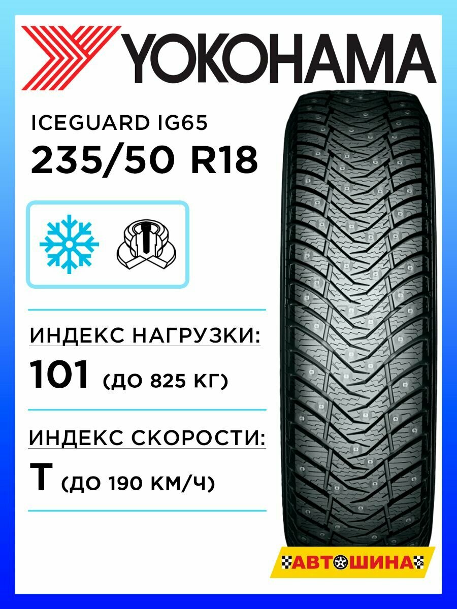 Купить Шины зимние 235/50 R18 YOKOHAMA IG65 101T Шипованные с доставкой по всей России. Шины зимние 235/50 R18 YOKOHAMA IG65 101T Шипованные: сравнение цен, характеристики, фото, актуальное наличие и цены.