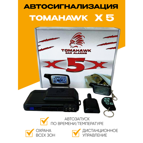 Автомобильная сигнализация с автозапуском и обратной связью, совместимая с Tomahawk X5 является представителем бюджетного семейства производителя. Несмотря на это, межбрелочная связь осуществляется по 8 каналам с трансивера-передатчика. За безопасность отвечает связь диалогового образца, метод плавающих каналов и 128-битный код. При каждом отправлении сигнала на брелок или наоборот, противоугонная система старлайн производит автоматический выбор альтернативной частоты. Пульт сигнализации Томагавк Х5 оснащен ЖК дисплеем, на который приходит обратная связь с авто. Охранная автомобильная система безопасности поддерживает функции дистанционного запуска двигателя по времени и температуре, а так же турботаймер. В комплект авто сигнализации входит все необходимое для установки.