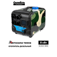 1 Автономный отопитель с дисплеем - 1 шт. 2 Выхлопная гофрированная нерж. труба - 1 шт. 3 Гофра для забора воздуха - 1 шт. 4 Гофра на развод теплого воздуха - 2 шт. 5 Хомуты - 4 шт. 6 Фильтр воздушный - 1 шт. 7 Пульт ДУ - 1 шт. 8 Инструкция на русском языке - 1 шт.
