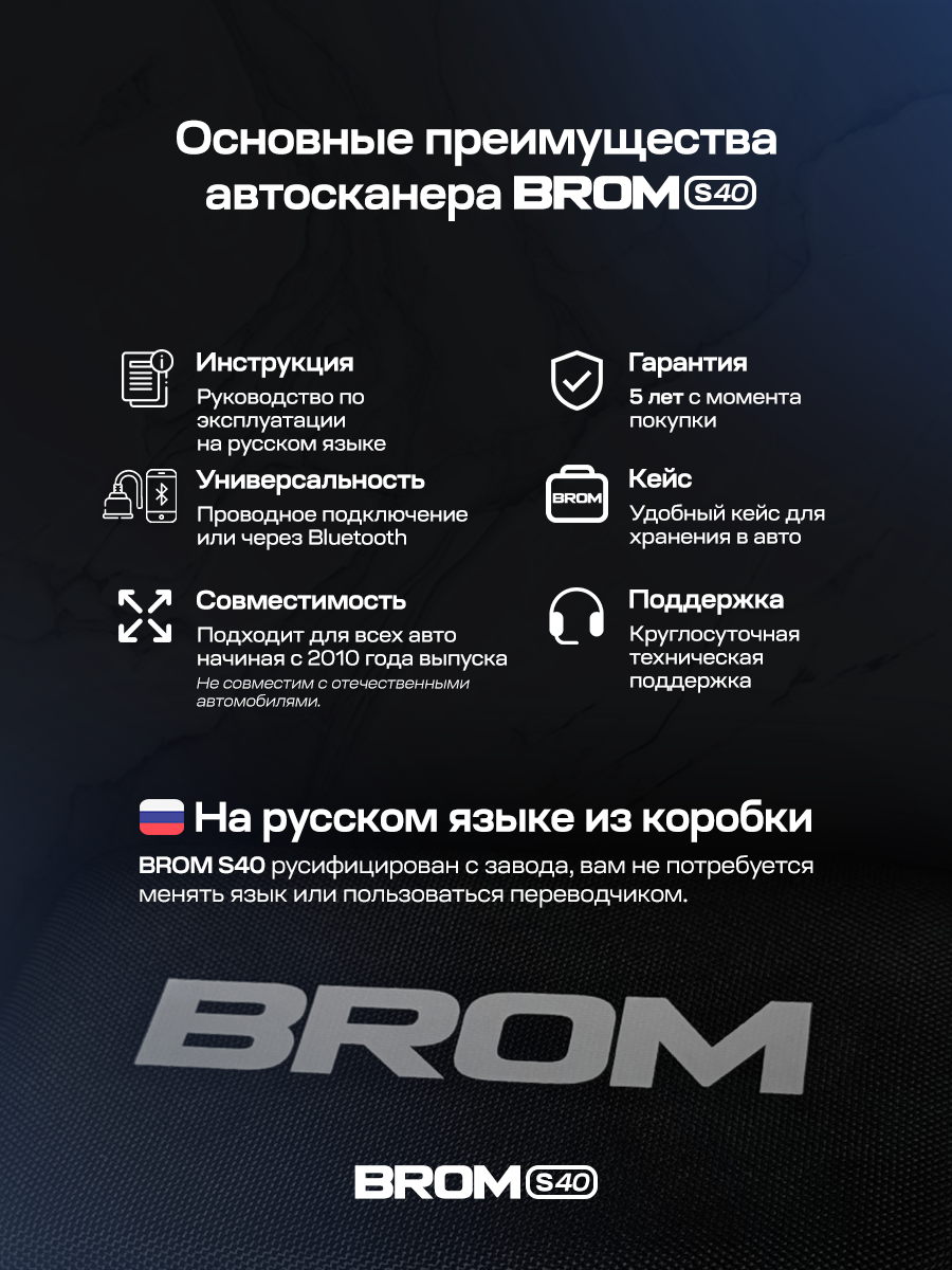 Автосканер для диагностики автомобиля BROM S40, OBD 2 сканер, диагностический сканер, мультимарочный: сравнение цен, характеристики, фото, актуальное наличие и цены.