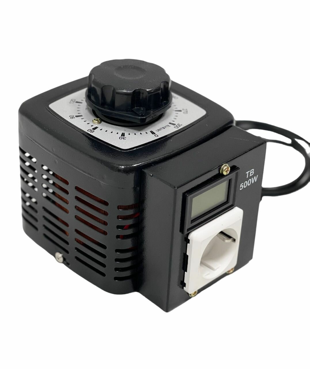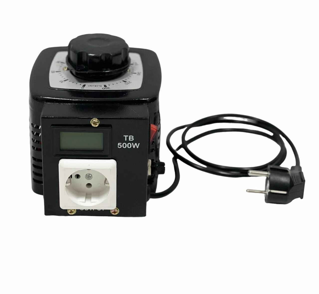 Однофазный регулируемый автотрансформатор UNITBYTE TB500W, мощностью 500вт предназначен для плавного регулирования напряжения в электросети 220в в диапазоне от от 0 до 300в и мощностью подключаемой нагрузки не более 400 вт. Этот регулируемый автотрансформатор можно использовать в качестве лабораторного автотрансформатора , при наладке и тестировании промышленного и бытового электрооборудования, для защиты оборудования при постоянных перегрузках в электросети, а так же в качестве понижающего трансформатора (на 100-120в) для японско-американской техники или в качестве повышающего трансформатора для техники 220-240 в, если входное напряжение сети меньше 220 в. Конструктивно автотрансформатор состоит из металлического корпуса с отверстиями для вентиляции, вольтметра, показывающего выходное напряжение в стандартной евро розетке ( при подключении японской техники надо дополнительно приобрести переходник).