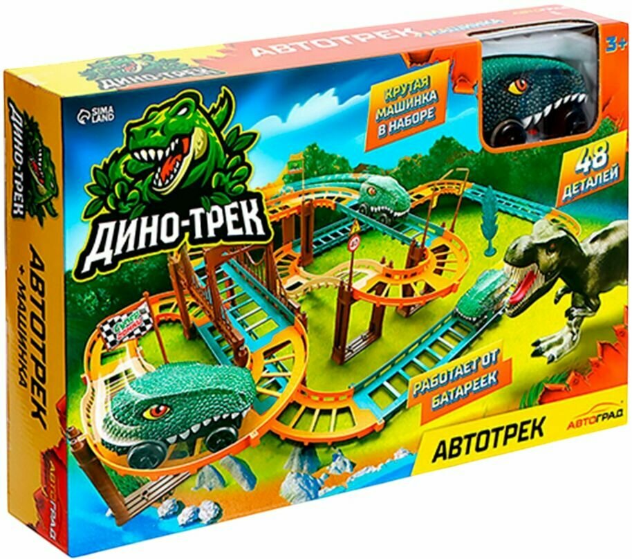 Автотрек детский «Дино-трек» с мостом и машинкой, 48 деталей, длина пути 274 см, работает от батареек, от 3 лет: сравнение цен, характеристики, фото, актуальное наличие и цены.