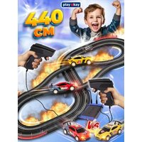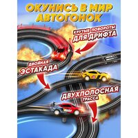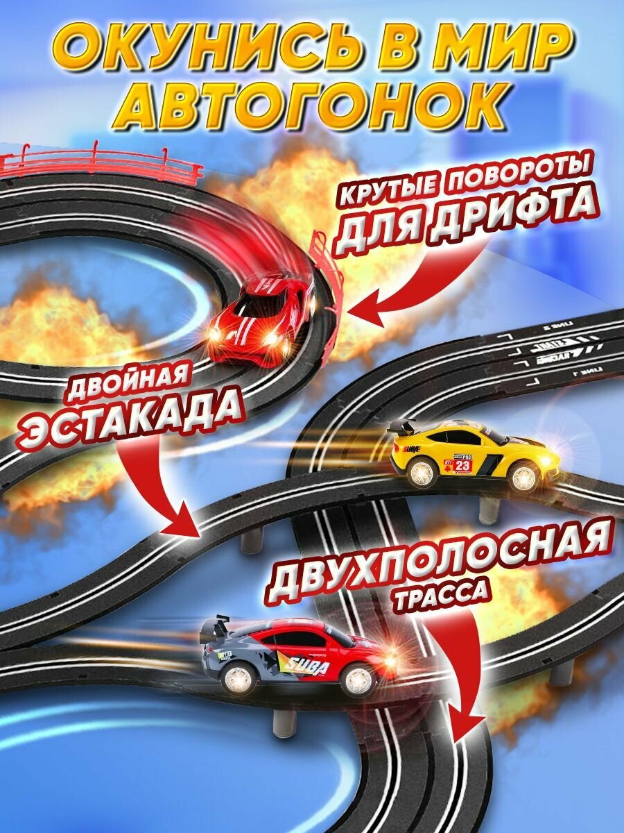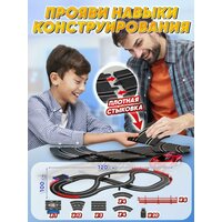 Набор автотрек с машинками игровой, детский гоночный трек подарочный и тачки на пульте управления Play Okay "Скоростное ралли" трасса электронная, детские игрушки для мальчиков, 440 см - приведет в восторг юных гонщиков. Теперь можно пригласить друзей, устроить соревнования. Комплект детский трек, кольцо включает в себя дорогу, которая предусматривает две полосы движения. Яркие скоростные автомобили будут ехать каждый по своей полосе. Управлять машинками очень просто с помощью удобных пультов. Конечно, самое главное – это вручить самому быстрому и ловкому кубок чемпиона. Игрушечный трек с 2-мя гоночными машинками. Принцип движения машинок - магнитный. В игре есть контроль скорости. Длина трассы 440 см. Структура - многокольцевая радиоуправляемая. Управление - дистанционное (2 пульта). Игра развивает внимательность и реакцию. Автотрек оснащен эстакадами, что в свою очередь значительно усложняет процесс соревнования. Питание происходит от 8 батареек типа АА. Гоночный автотрек - это превосходный подарок для мальчишек - любителей высокоскоростных соревнований. Очень простая сборка, каждый кусок развивашки, трассы присоединяется простым щелчком. Трасса серпантин с машинами, работает от сети, мальчишке достаточно подключить гоночный трек к питанию, установить машинки на трассу и нажать кнопку на джойстике. Миниатюрные автомобили тут же придут в движение и начнут соревноваться в скорости, совершая невероятные виражи. Тщательно подогнанные детали трассы и прочные крепления обеспечат надёжное сцепление машин с дорогой, что сделает управление удобней, а эстакады делают игру еще увлекательнее. Гоночный трек дорожка с двумя машинками - отличный подарок ребенку, для мальчика на Новый год, день рождения. Отличный новогодний подарок для детей и крутые, интересные игрушки для мальчика 5,6,7,8 лет. Машинки движутся по треку тем быстрее, чем сильнее соперники нажимают ручки генераторов тока. Набор из двух маленьких машинок где светятся фары понравится вашему ребенку