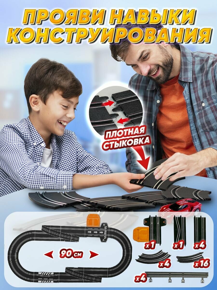 Набор автотрек с машинками игровой, детский гоночный трек подарочный и тачки на пульте управления Play Okay "Скоростное ралли" трасса электронная, детские игрушки для мальчиков, 394 см - приведет в восторг юных гонщиков. Теперь можно пригласить друзей, устроить соревнования. Комплект детский трек, кольцо включает в себя дорогу, которая предусматривает две полосы движения. Яркие скоростные автомобили будут ехать каждый по своей полосе. Управлять машинками очень просто с помощью удобных пультов. Конечно, самое главное – это вручить самому быстрому и ловкому кубок чемпиона. Игрушечный трек с 2-мя гоночными машинками. Принцип движения машинок - магнитный. В игре есть контроль скорости. Длина трассы 394 см. Структура - многокольцевая радиоуправляемая. Управление - дистанционное (2 пульта). Игра развивает внимательность и реакцию. Автотрек оснащен эстакадами и мертвыми петлями что в свою очередь значительно усложняет процесс соревнования. Питание происходит от 6 батареек типа АА. Гоночный автотрек - это превосходный подарок для мальчишек - любителей высокоскоростных соревнований. Очень простая сборка, каждый кусок развивашки, трассы присоединяется простым щелчком. Трасса серпантин с машинами, работает от сети, мальчишке достаточно подключить гоночный трек к питанию, установить машинки на трассу и нажать кнопку на джойстике. Миниатюрные автомобили тут же придут в движение и начнут соревноваться в скорости, совершая невероятные виражи. Тщательно подогнанные детали трассы и прочные крепления обеспечат надёжное сцепление машин с дорогой, что сделает управление удобней, а 2 петли делают игру еще увлекательнее. Гоночный трек дорожка с двумя машинками - отличный подарок ребенку, для мальчика на Новый год, день рождения. Отличный новогодний подарок для детей и крутые, интересные игрушки для мальчика 5,6,7,8 лет. Машинки движутся по треку тем быстрее, чем сильнее соперники нажимают ручки генераторов тока. Набор из двух маленьких машинок имеет сменные корпуса