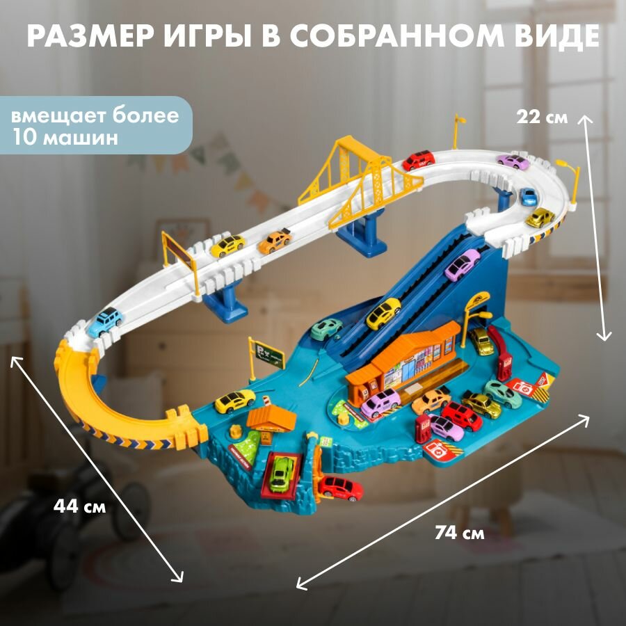 Купить Автотрек » Скоростное шоссе» с машинками в наборе 8 штук трек детский игровой центр парковка с доставкой по всей России.