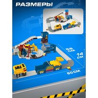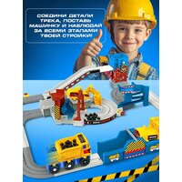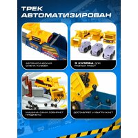 Стройка, которая оживает! Интерактивный строительный автотрек с машинкой — это умная игрушка для маленьких мастеров. Одна машинка умеет превращаться в три спецтехники: трактор, самосвал и погрузчик. Работает от одной батарейки AA — игра начинается одним нажатием.