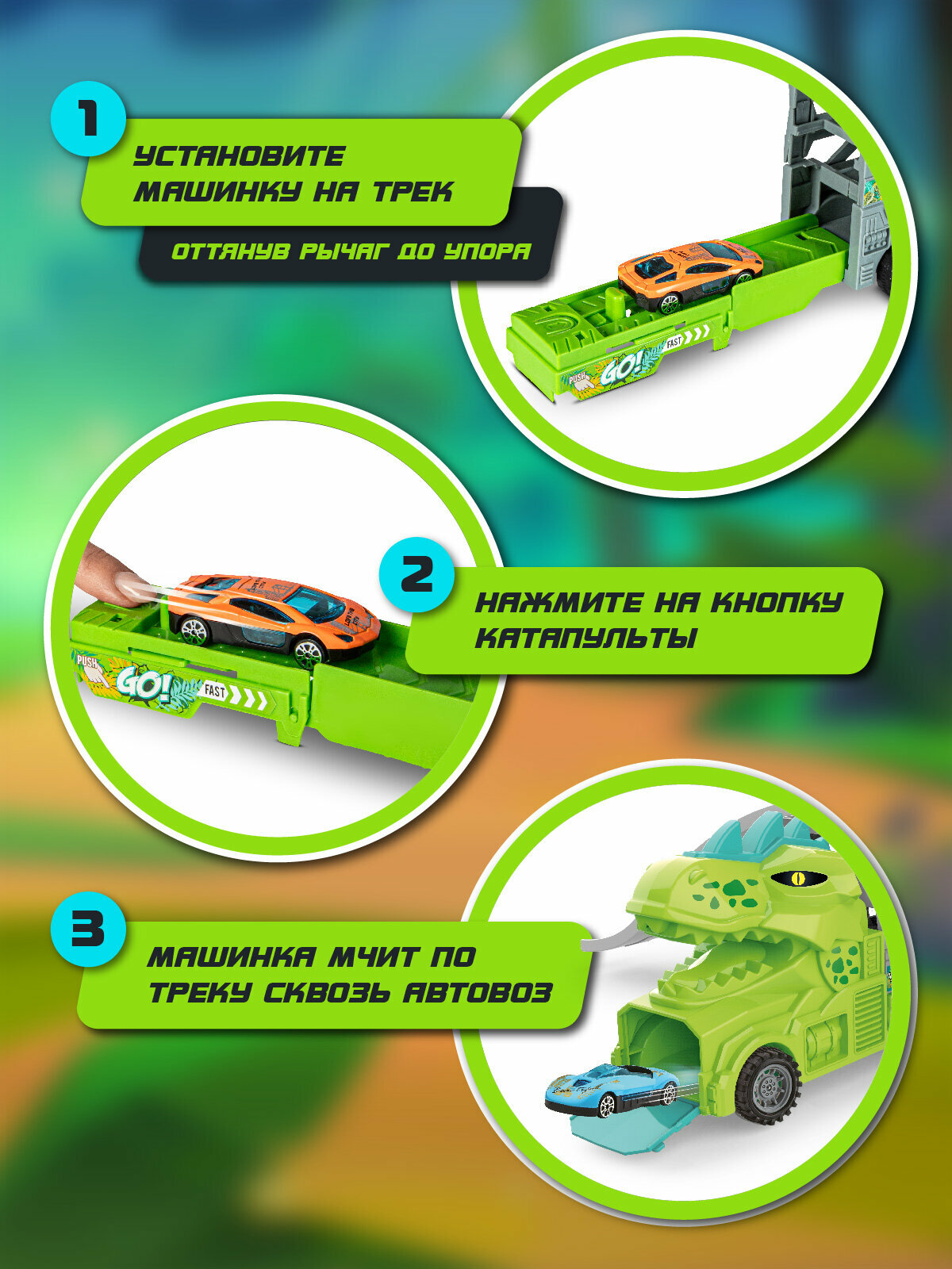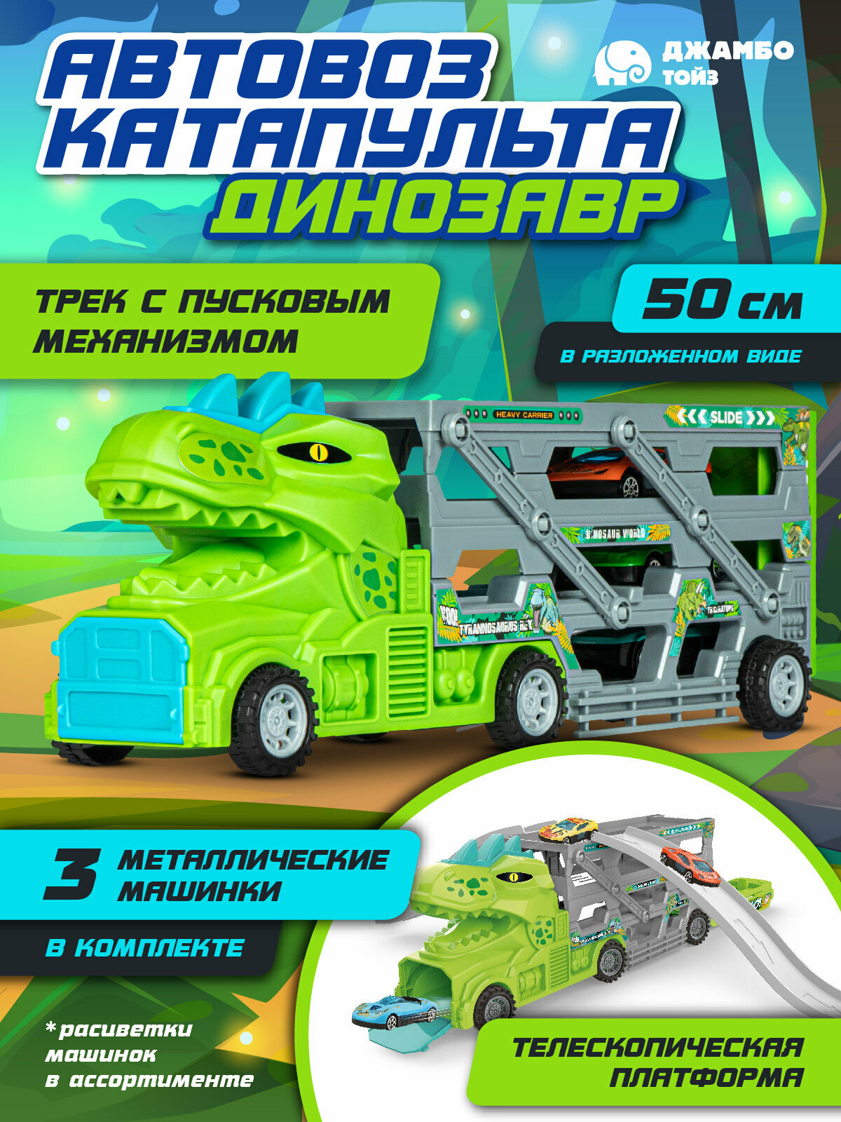 Купить Автовоз-катапульта Динозавр с автотреком, пусковое устройство, набор с машинками, JB0405229 с доставкой по всей России.