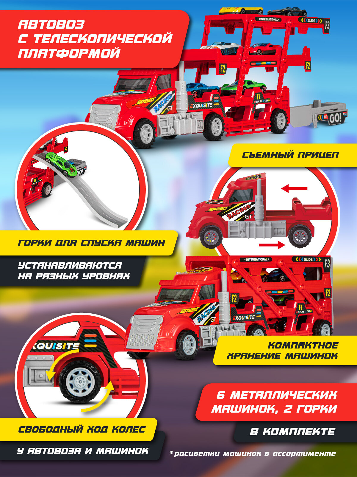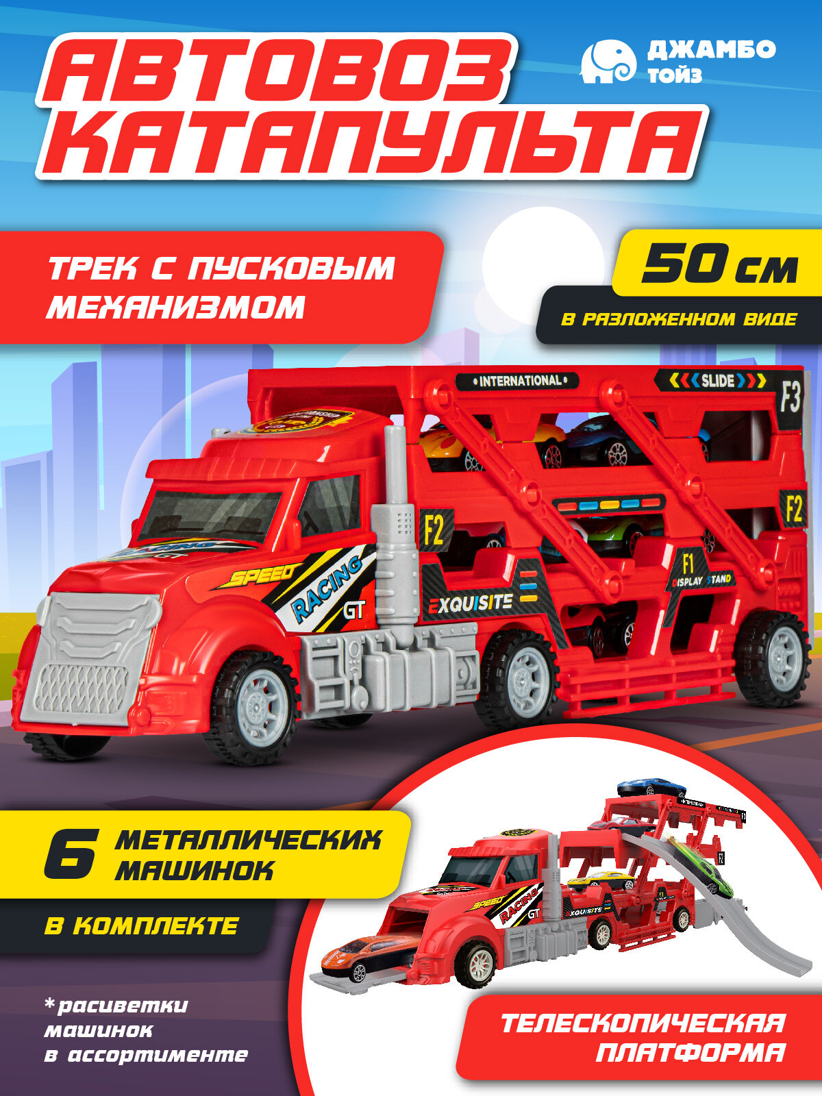 Купить Автовоз-катапульта с автотреком, пусковое устройство, набор с машинками, JB0405227 с доставкой по всей России.