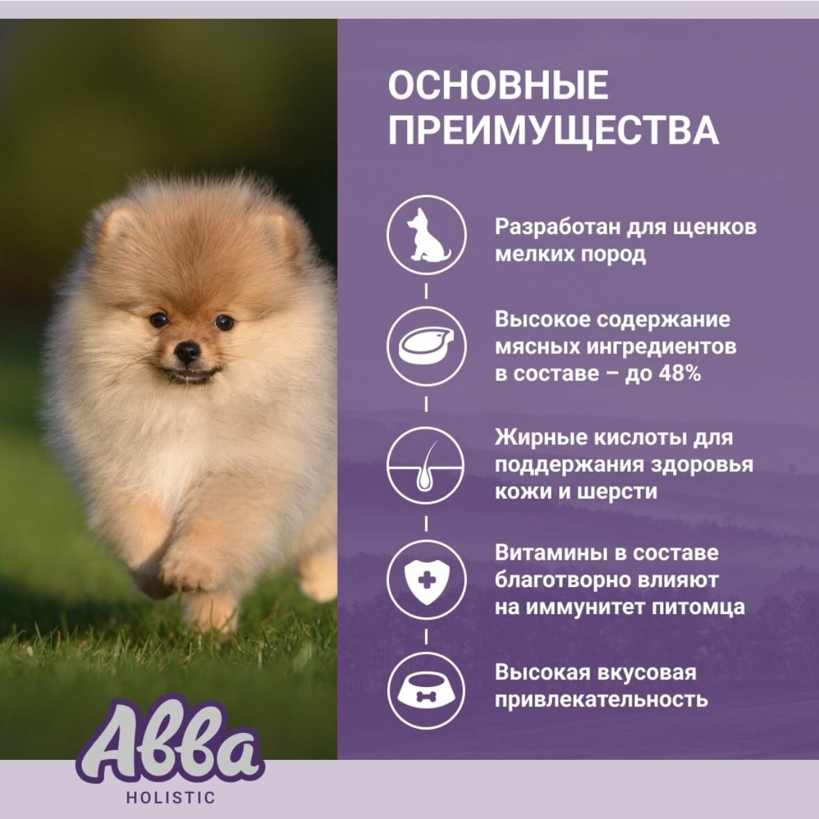 Авва Holistic – это полнорационный корм для щенков мелких пород, изготовлен на основе свежего мяса индейки (15%). Корм сбалансирован по составу, количеству витаминов и питательных веществ для молодого растущего организма. Высокое количество протеина способствует быстрому насыщению и правильному развитию мышечного корсета.