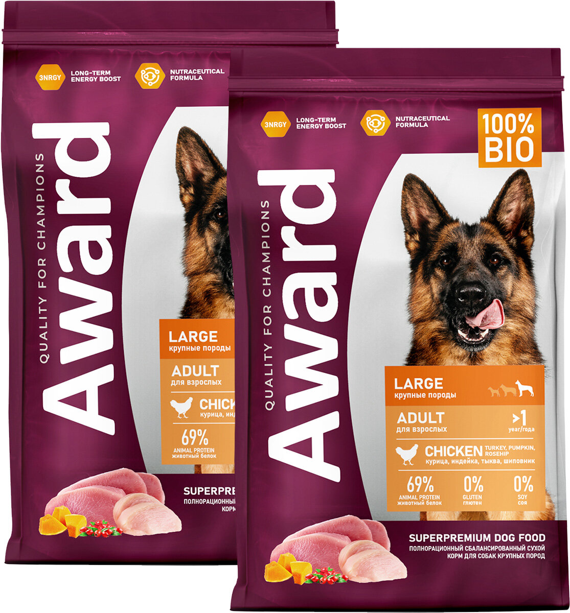 Сухой корм AWARD ADULT LARGE для взрослых собак крупных пород с курицей и индейкой с добавлением тыквы и шиповника.