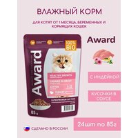 Влажный корм для котят Award 85г*24шт Healthy Growth Кусочки в соусе с индейкой