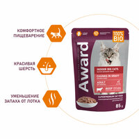 AWARD Полнорационный консервированный корм «Indoor big cats» для взрослых домашних кошек крупных пород, кусочки в соусе с говядиной 85 г.