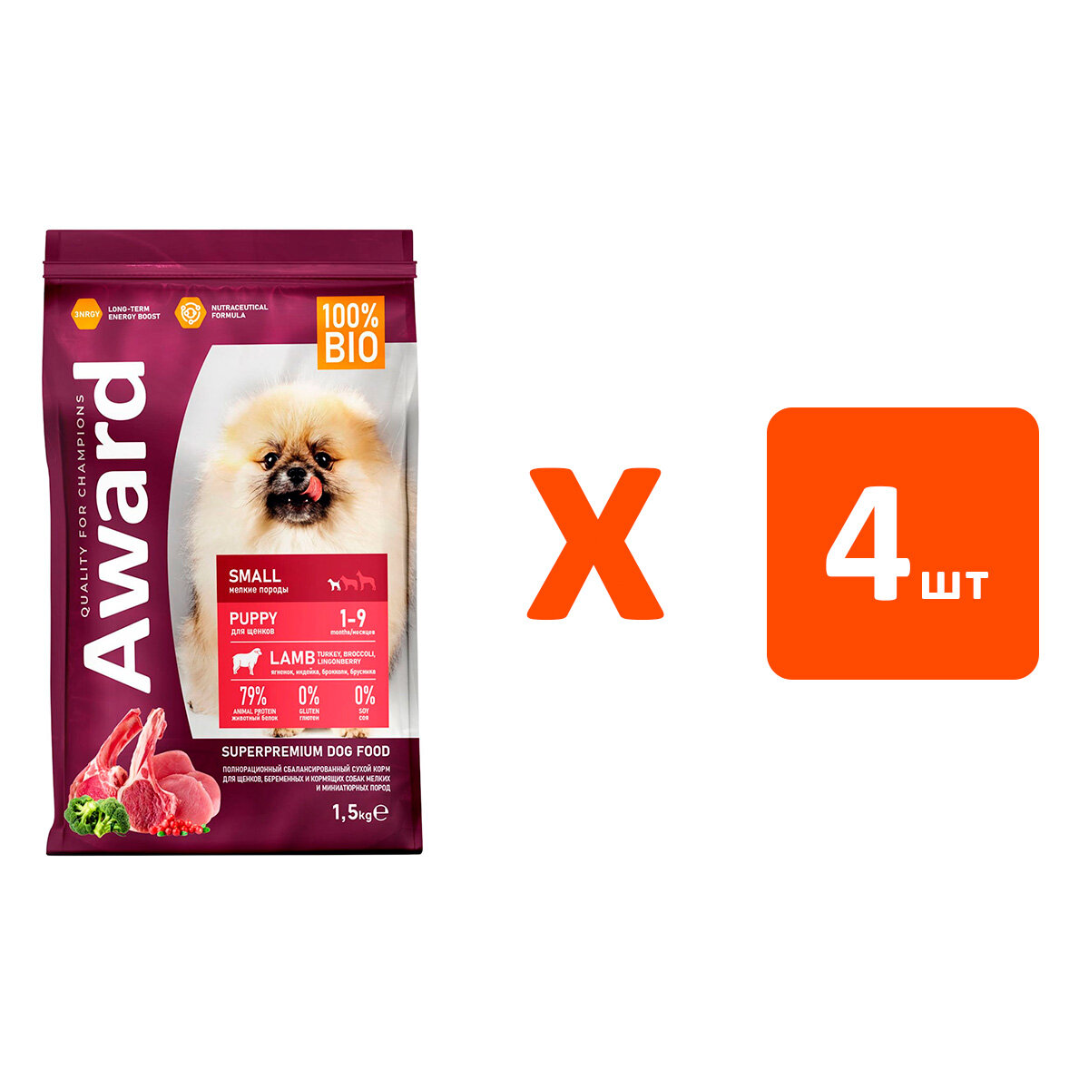 AWARD SMALL PUPPY для щенков, беременных и кормящих сук маленьких пород с ягненком и индейкой 1,5 кг х 4 шт: сравнение цен, характеристики, фото, актуальное наличие и цены.
