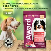 Сухой корм AWARD для взрослых собак всех пород с говядиной и курицей с добавлением брокколи и черники 12 кг. Корм изготовлен из 100% натуральных ингредиентов по инновационной формуле — это обеспечивает комплексную нутрицевтическую поддержку организма питомца. При изготовлении корма использовалась технология 3NRGY — сочетание полезных углеводов, дающее длительный запас энергии и чувство сытости. Корм обогащен полиненасыщенными жирными кислотами, которые повышают качество шерсти и укрепляют иммунитет. Пробиотики и пребиотики помогают сохранять естественный баланс кишечной микрофлоры и способствуют оптимальному усвоению питательных веществ. В состав добавлена брокколи — отличный источник клетчатки, улучшающий работу ЖКТ. Без красителей и консервантов.