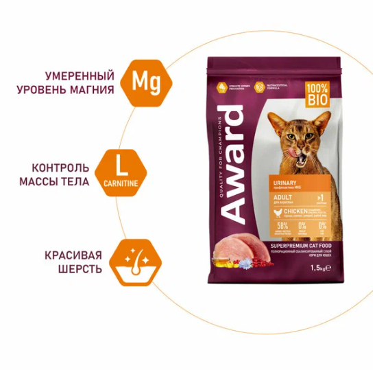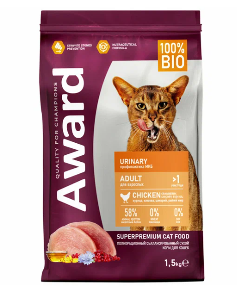 Выбирая сухой корм Award Urinary, вы делаете правильный выбор в пользу здоровья и благополучия вашего питомца.