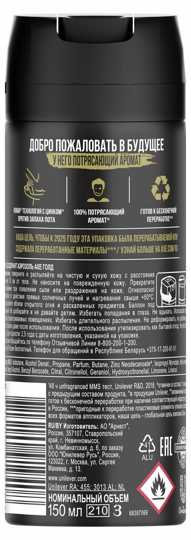 Купить Axe Дезодорант-спрей мужской Gold, 150 мл/ с доставкой по всей России. Axe Дезодорант-спрей мужской Gold, 150 мл/: сравнение цен, характеристики, фото, актуальное наличие и цены.