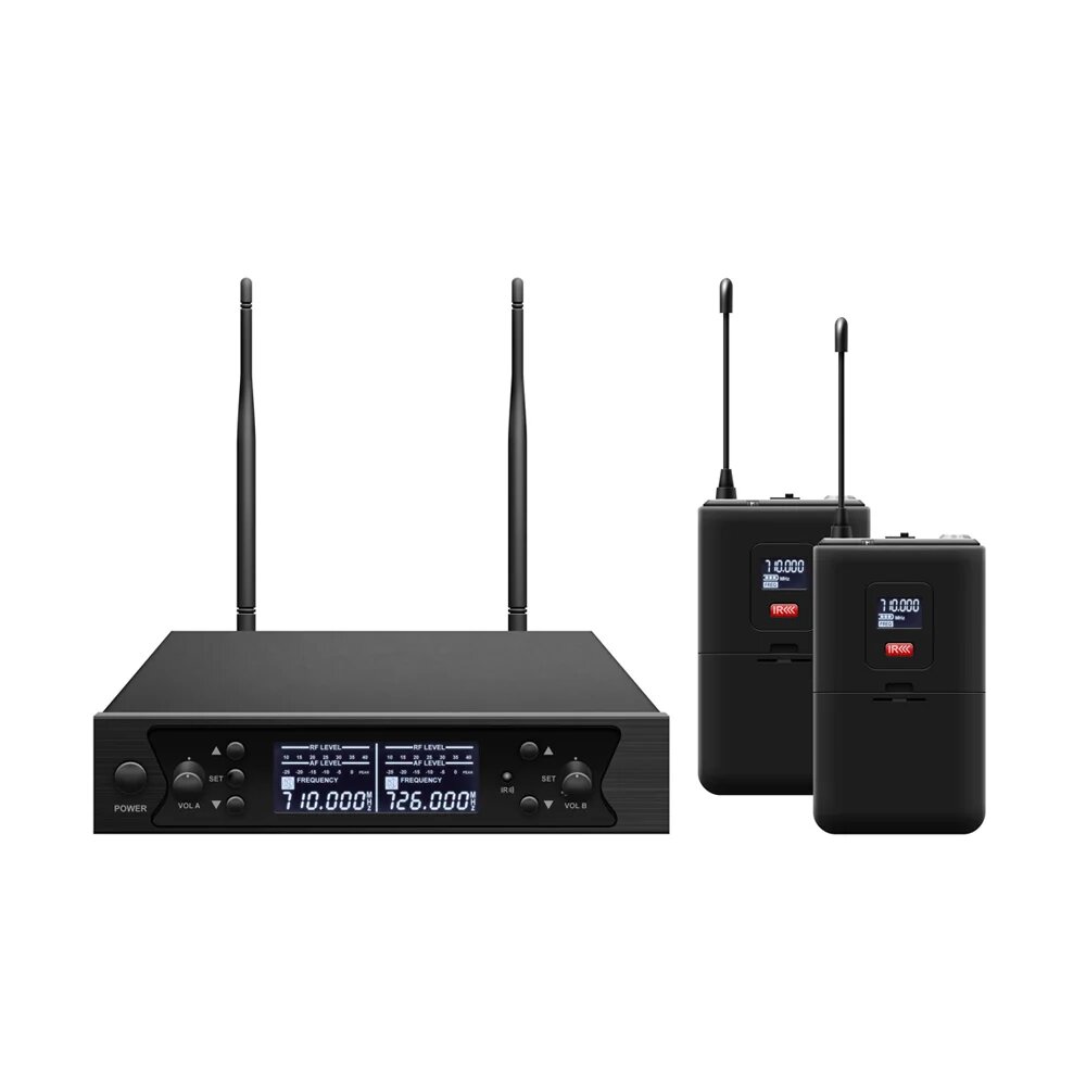 AxelVox DWS7000HT (LT bundle) — высококачественная беспроводная микрофонная система профессионального уровня, состоящая из двухканального приемника, двух беспроводных поясных радиопередатчиков, двух головных и двух петличных микрофонов.
