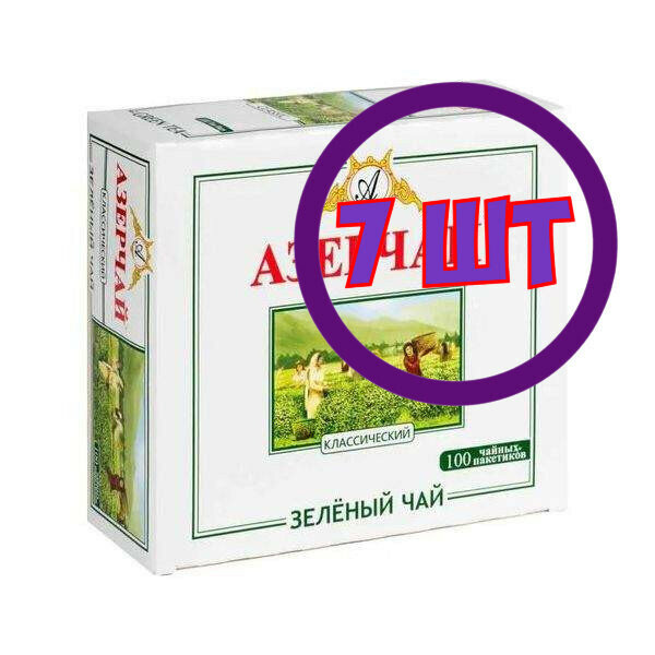 Комплект 7 упаковок. Чай зеленый Азерчай азербайджанский классический чай в пакетиках освежающий вкус 100 пакетиков по 1,8 гр. Азерчай - это первый национальный чайный бренд независимого Азербайджана, отражающий специфику и свежесть азербайджанского чая. Этот бренд представляет собой смесь высококачественных отборных чаев и отвечает многочисленным вкусовым требованиям большого спектра потребителя. Большая упаковка из 100 пакетиков идеально подходит для частых чаепитий в кругу семьи и приятного времяпрепровождения.