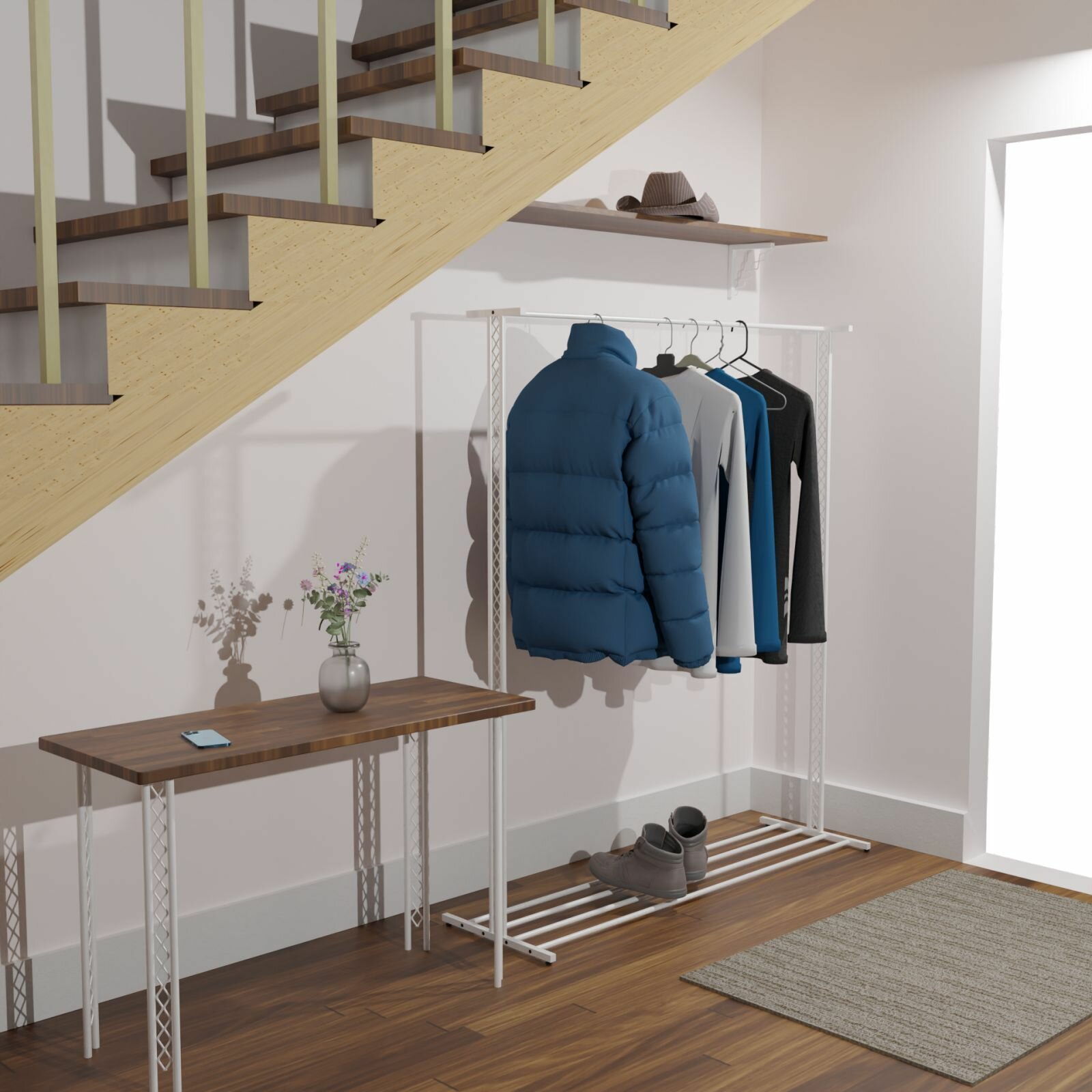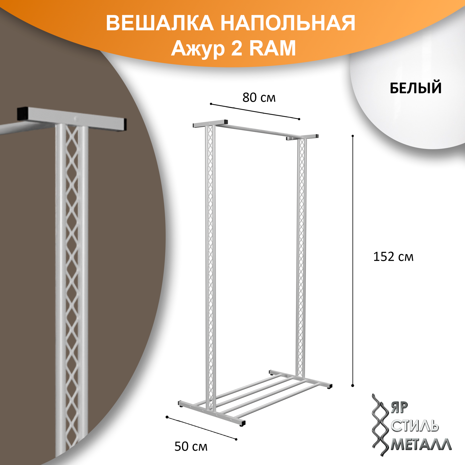 Купить Ажурная вешалка напольная детская 152*80*50см. Белый глянец. Рейл для одежды, металлический, лофт. Ажур 2 RAM с доставкой по всей России.