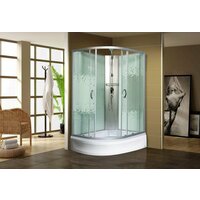 Душевая кабина без крыши. Правосторонняя. Размер: 110х80х206 см Характеристики: Управление - ручное Гидромассаж – нет Передние стенки и двери – стекло 4 мм, прозрачное с рисунком мозаика Задние стенки – стекло белое, крашеное Поддон – акрил, с сифоном, на каркасе с регулируемыми ножками Двери – раздвижные Профиль – алюминий, хром Высота поддона – 24 см Глубина поддона – 12 см Смеситель – есть Зеркала – нет Полочка - есть