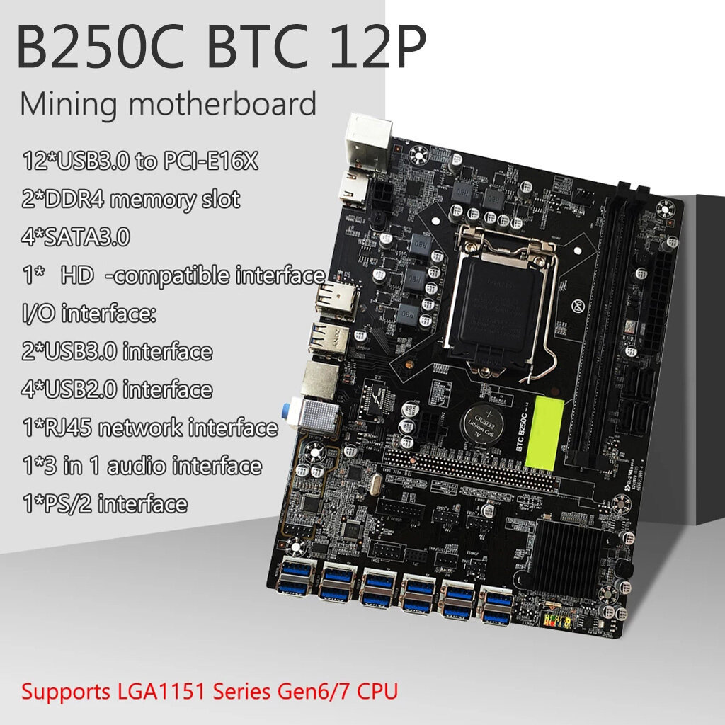 B250C Материнская плата для майнинга BTC с процессором G3900 + 4G/8G DDR4 2133 МГц Память 12 графических слотов USB3.0 PCIE LGA 1151Pin Bo: сравнение цен, характеристики, фото, актуальное наличие и цены.