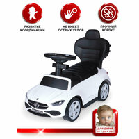 Купить Каталка детская Mercedes-Benz AMG C63 Coupe BabyCare, (кожаное сиденье, резиновые колеса), белый/черный с доставкой по всей России.