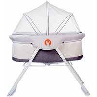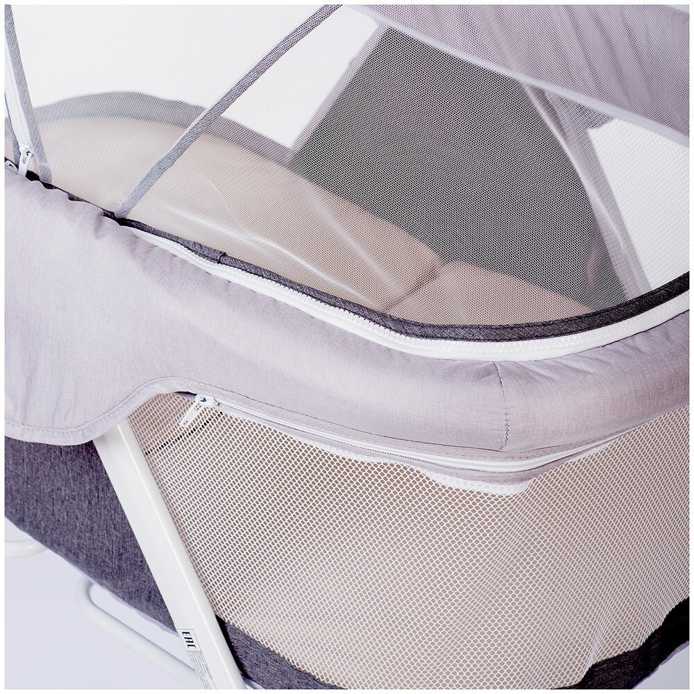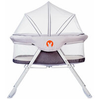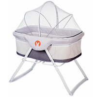 Складная детская кровать-колыбель со стальным каркасом Для детей до 6 месяцев и массой до 9 кг Компактный размер Складывается одним движением После быстрого демонтажа ножек помещается в сумку Сумка для транспортировки кровати в комплекте Выдвижные полозья для поперечного качания Съемная москитная сетка с держащим форму каркасом Съемный утеплитель на бортах кровати Складное дно из МДФ панелей Дно покрыто мягкой TC тканью с набивкой из пенополиуретана Комплектация: Сумка для транспортировки и хранения, москитная сетка