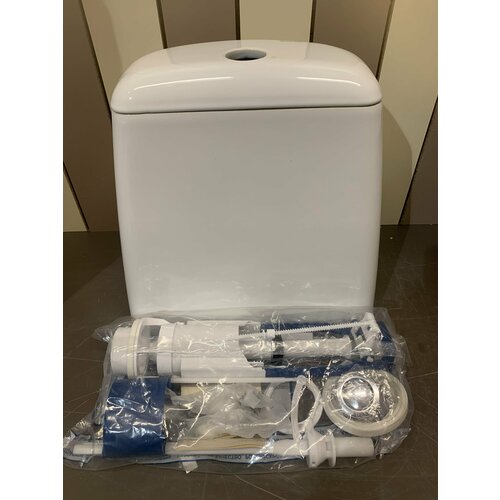 Бачок продается с арматурой Alca Plast (сливной и заливной механизм) и прокладкой. Данная арматура работает в режиме старт/стоп, возможность экономии воды, удобно для тех, у кого стоят счетчики на воду.