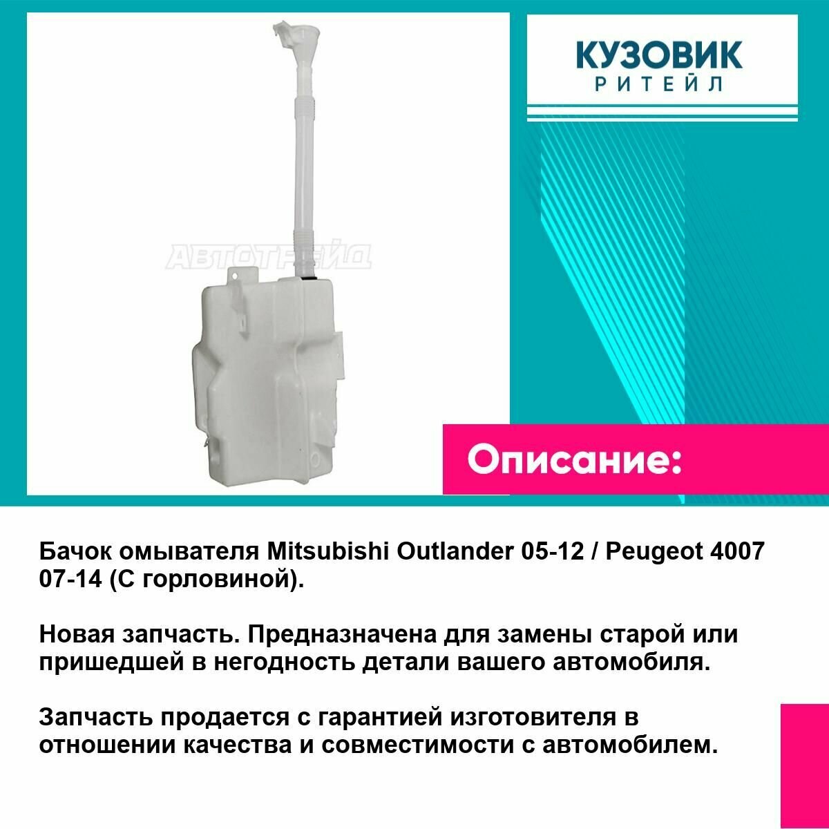 Бачок омывателя Mitsubishi Outlander 05-12 Peugeot 4007 07-14 (С горловиной): сравнение цен, характеристики, фото, актуальное наличие и цены.