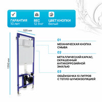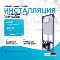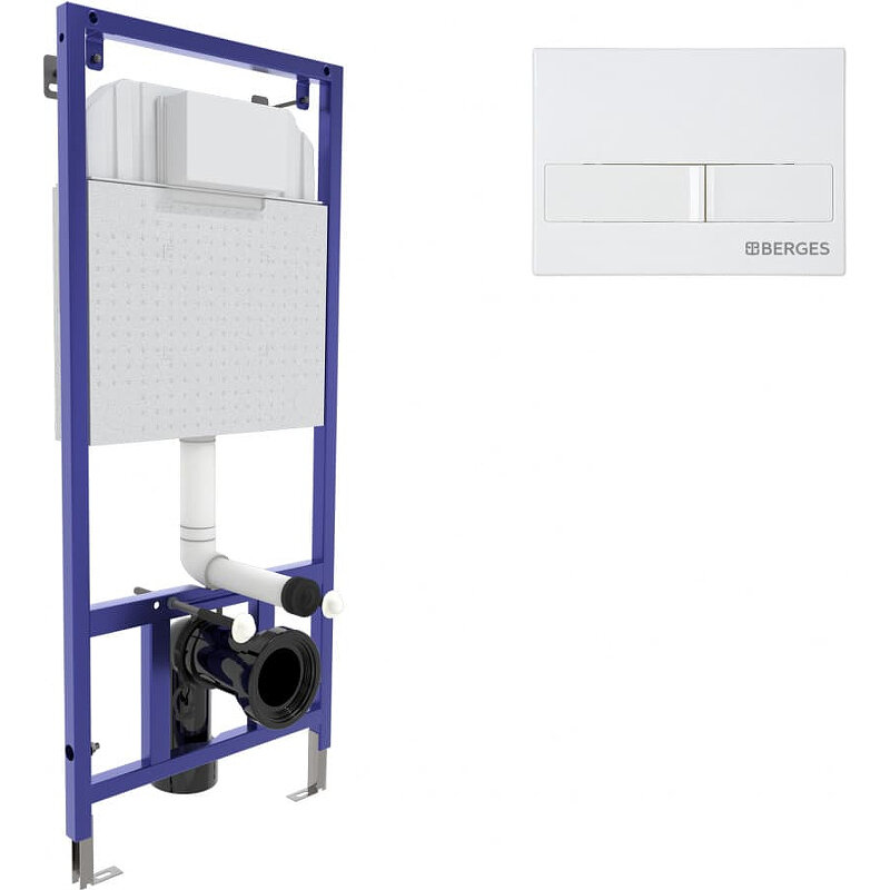 Инсталляция Berges Wasserhaus Novum 040211 для подвесного унитаза со смывным бачком и Белой клавишей смыва.