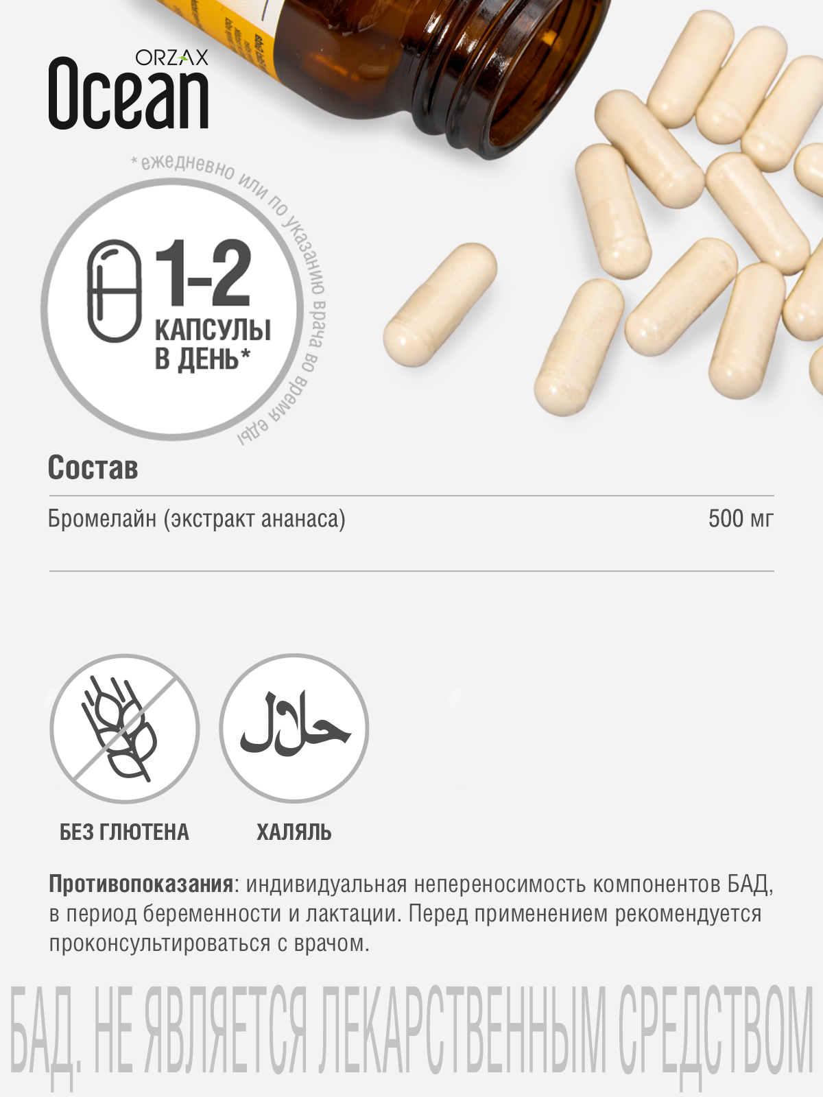 Купить БАД ORZAX «Ocean Bromelain», для пищеварения и похудения, 30 капсул с доставкой по всей России. БАД ORZAX «Ocean Bromelain», для пищеварения и похудения, 30 капсул: сравнение цен, характеристики, фото, актуальное наличие и цены.