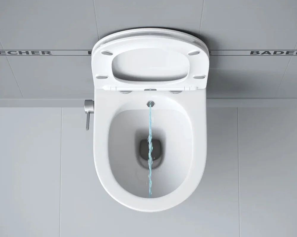 Подвесной унитаз BADENBECHER отличается своей безободковой конструкцией, что обеспечивает более эффективное и гигиеничное смывание. Отсутствие ободка облегчает процесс уборки и предотвращает скопление бактерий и грязи.