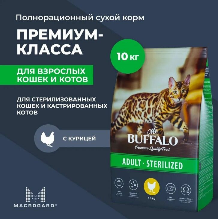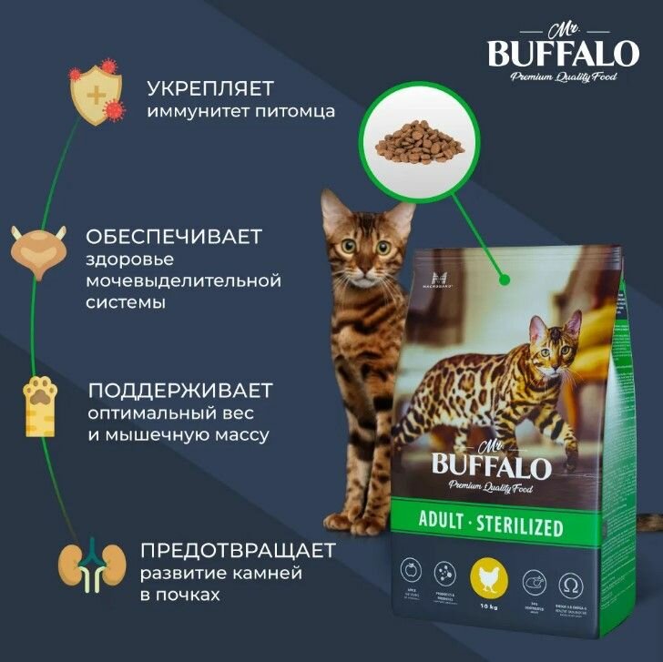 Баффало (Mr. Buffalo ADULT STERILIZED) сухой корм для взрослых стерилизованных кошек с курицей 10кг.