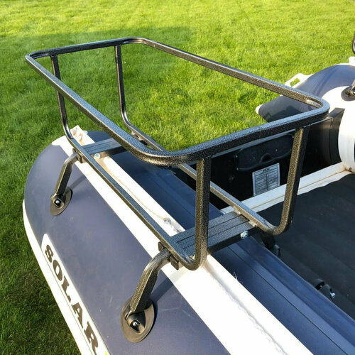 Багажная корзина предназначена для перевозки рыболовного ящика RWBox 700 или 2-3 канистр бензина по 20-30 литров. Позволяет сэкономить место в кокпите. Корзина прочно крепится на кормовой части баллона лодки при помощи шайб и клея. Выполнена из квадратного профиля 20*20 с толщиной стенки 1,2 мм. Конструкция разборная. Крепление на лодку входит в комплект.