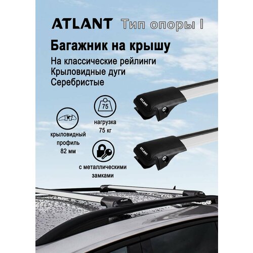 Багажник на крышу ATLANT опора I универсальный с дугой 1050 мм, установка на классические рейлинги для Audi, BMW, Citroen, Chevrolet, Fiat, Ford, Hyundai, Honda, Haval, Infiniti, Kia, Lada, Land Rover, Mazda, Mercedes, Mitsubishi, Nissan, Opel, Porsche, Renault, Ssang Yong, Suzuki, Toyota, VW, Volvo и др.